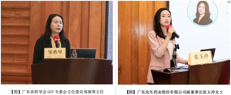 本次会议由香港大学深圳医院周文菁主任、东莞市人民医院关灵主任联合主持。主办方代表邹燕琴主任(广东省药学会GCP专委会主任委员)、学术支持单位代表张玉冲女士(广东众生药业股份有限公司副董事长)为大会致辞。