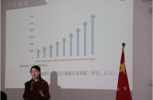 刘老师指出,从2010~2018年国内医疗器械市场规模及生产企业数量变化来看,医疗器械是医疗行业中的“朝阳”。随后刘老师从行业发展现状、国家政策法规情况、市场监管等方面出发,并结合个人在检验业务方面的经验和企业遇到相关问题与员工进行了分享。