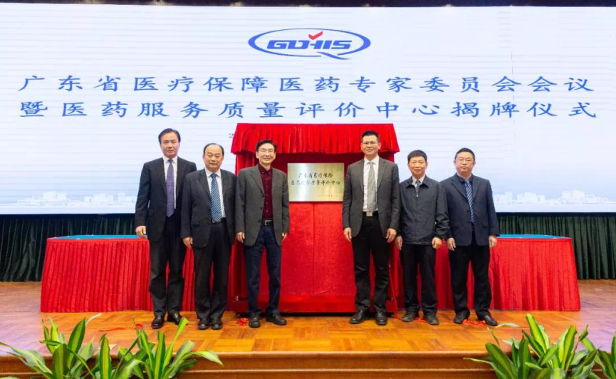 2020年12月2日下午,广东省医疗保障医药专家委员会会议暨医药服务质量评价中心揭牌仪式在广东大厦举行。会上,广东省医保局党组书记、局长肖学,广东省医保局副局长董炳光,广东省医学科学院党委书记耿庆山,广东省中医药学会会长吕玉波,广东省医疗保险医药服务质量评价中心主任袁向东,广东省医学会会长姚志彬,共同为广东省医疗保险医药服务质量评价中心揭牌,标志着我省医保医药服务管理工作进入新阶段。
