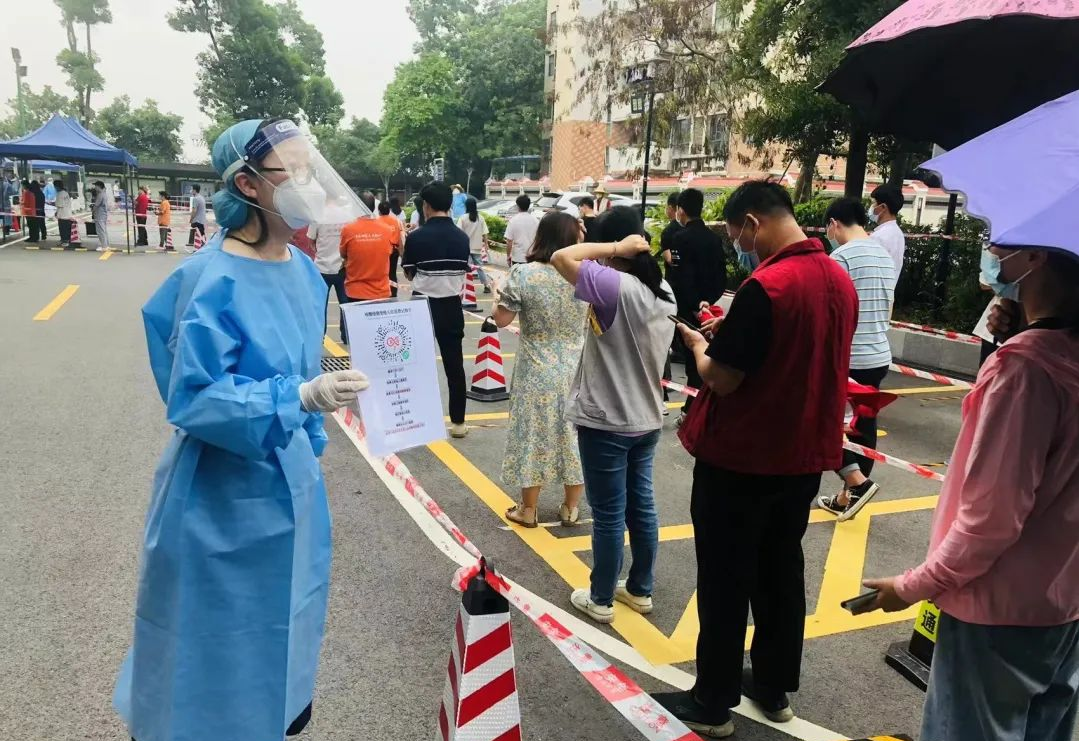 当天,天气闷热,核酸检测任务异常繁重,志愿者们需要在各个核酸检测点协助做好秩序维护、扫码登记、防护指引等工作。在协助检测及排队过程中,突发各中小问题,也都需要志愿者们耐心引导。由于长时间工作,半天下来嗓子沙哑了也毫无怨言。相反,大家通过参与这个疫情防控工作,更深刻的体会到一线医疗工作者的不易与艰辛。都纷纷表示今后仍然会积极响应党支部号召,参与到疫情防控工作中来,勇做“最美的逆行者”!