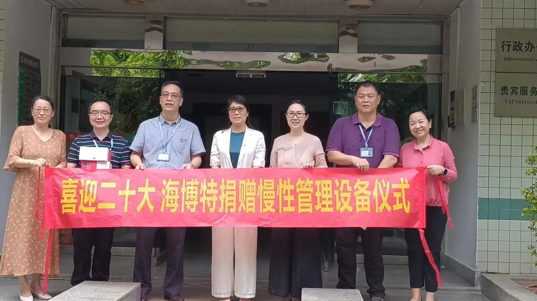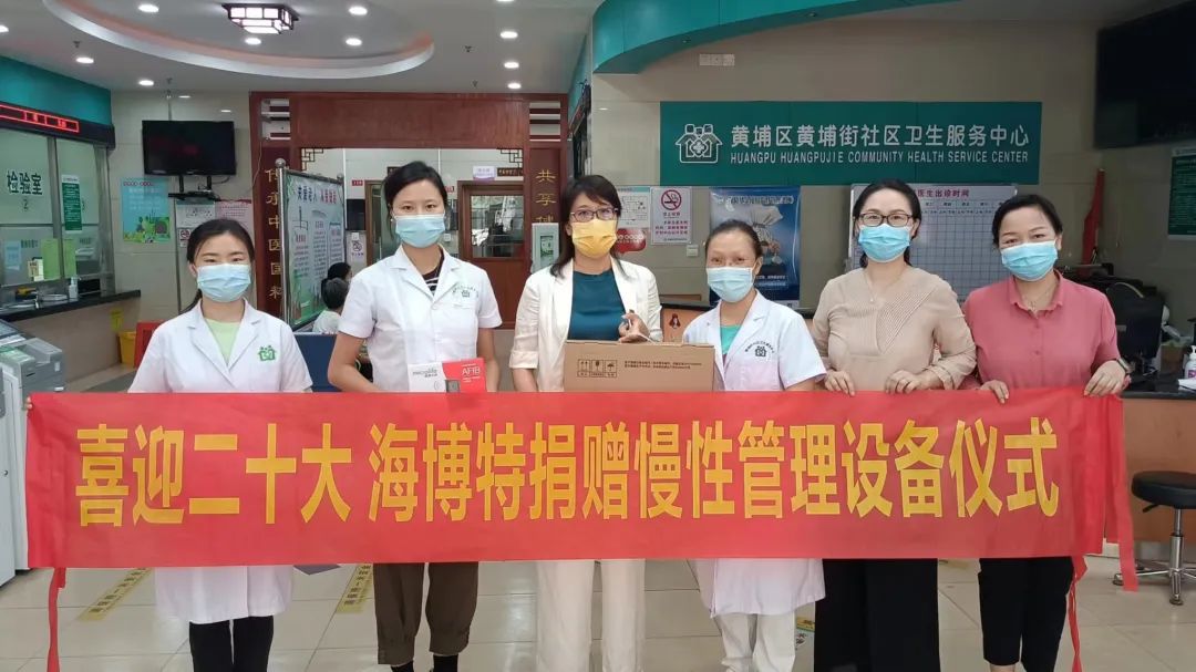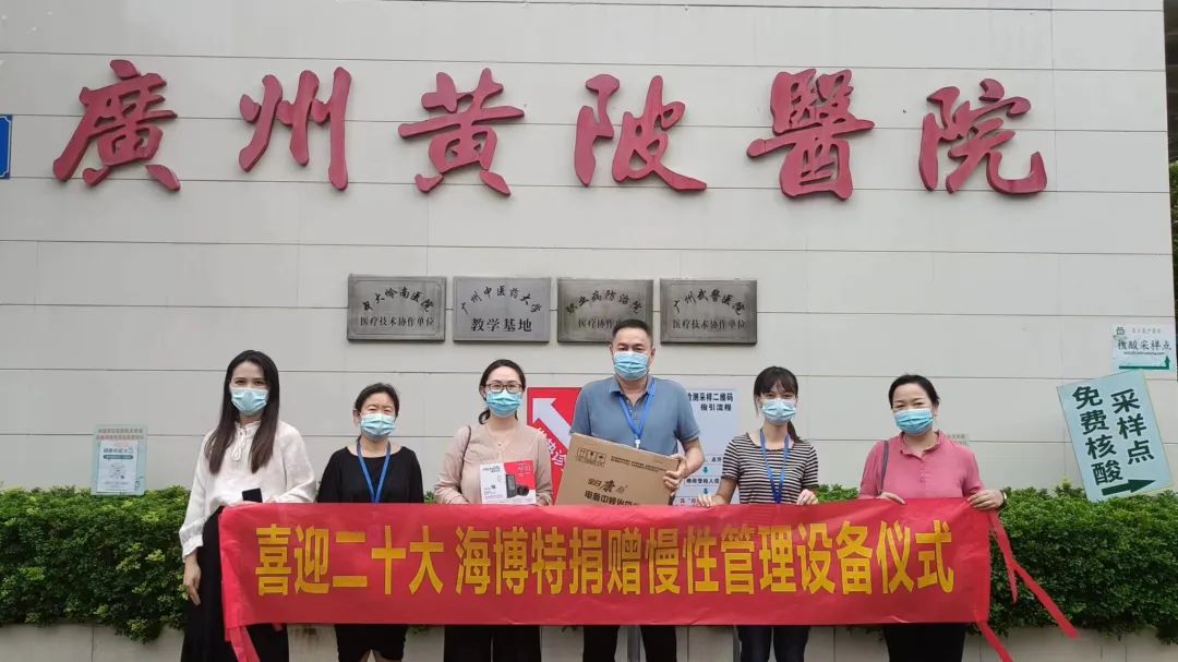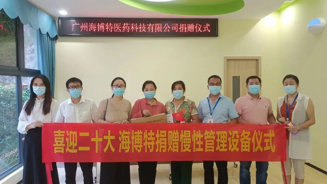 为响应国家号召、践行企业社会担当,在国庆佳节、党的“二十大”到来之际,海博特党支部于2022年9月30日组织开展了“喜迎二十大 海博特捐赠慢病管理设备仪式”,向黄埔区内五家医院捐赠血压计、理疗仪等慢病管理设备。各医院院长、海博特总经理王帅帅、总经理助理兼党支部书记王野萌、真实世界研究中心总监段琢等相关代表出席了本次捐赠仪式。