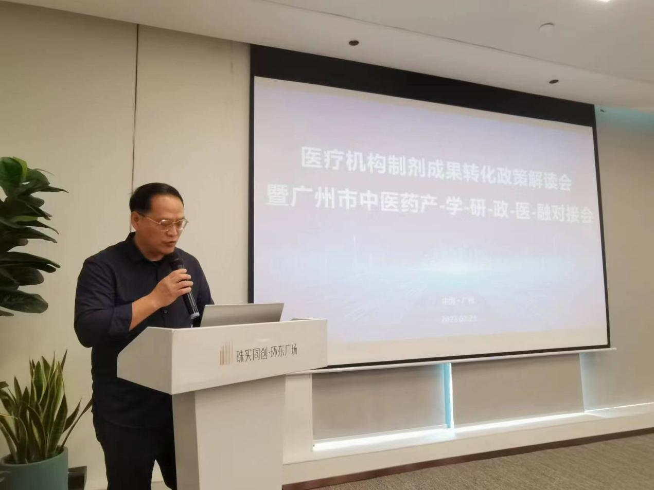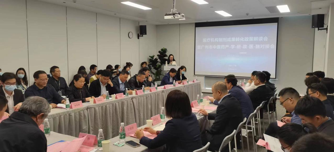 2023年2月23日,由广东省药品监督管理局、广州市科学技术局、广州市卫生健康委员会、广东省新黄埔中医药联合创新研究院指导,广州市临床试验创新服务中心和广州海博特医药科技有限公司联合主办的“医疗机构制剂成果转化政策解读会暨广州市中医药产-学-研-政-医-融对接会”在广州市越秀区珠实同创·环东广场成功举办。会议旨在助力广州市生物医药产业科研能力和水平的提高、搭建广州市医疗机构制剂开发与成果转化的创新交流平台。