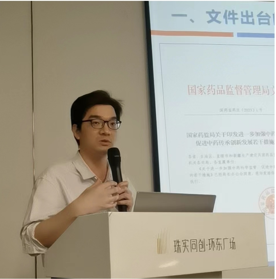 广东省是传统中医药大省,医疗机构制剂数量众多,积极推动医疗机构制剂成果转化是建设中医药强省的重要组成部分。广东省也敢为人先,自十八大以来便积极推动医疗机构制剂转化和中医药品种的遴 选和培育,本次会议有幸邀请到广东省药品监督管理局行政许可处领导就《关于进一步加强中药科学监管促进中药传承创新发展的若干措施》作政策解读,并对广东省支持中医药发展的相关政策和举措作了介绍。