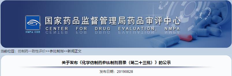 关于发布《化学仿制药参比制剂目录(第二十三批)》的公示